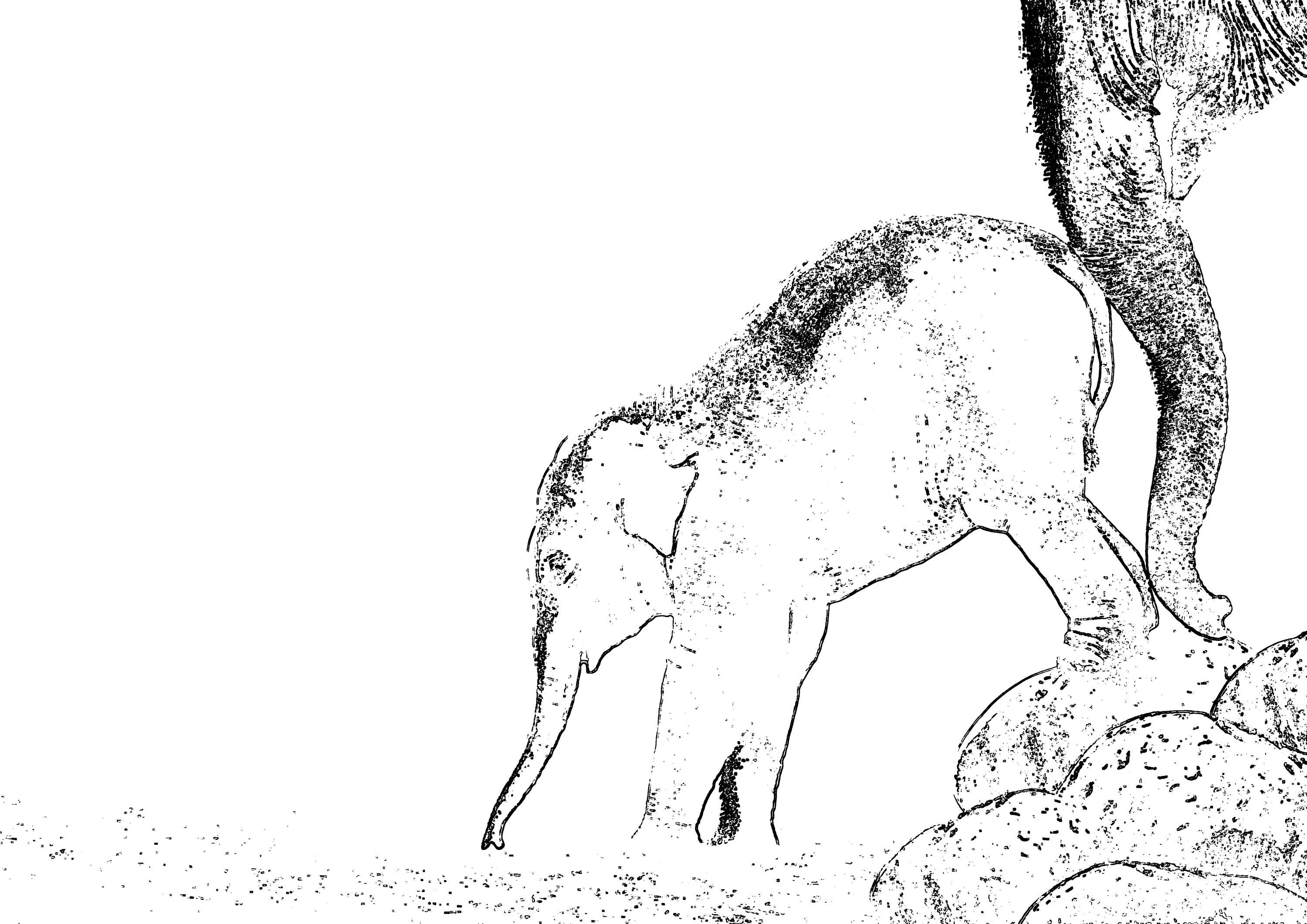 5. I started by strengthening the body and the hind legs of the elephant using the same pigments as before. Burnt Umber and Sepia were added to the bottom of the belly, legs, and middle of the body.